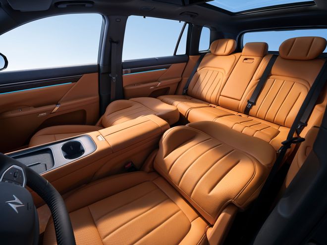 其中最令人瞩目的,当属同级唯一的二排电动魔毯座椅。4/6分电动腿托与靠背电动无级调节,让“盘腿坐”、“斜靠着”这些在传统汽车里不可思议的放松姿态成为可能。配合主副驾同步升级的按摩功能——力度增强30%、面积增加30%,长途旅行中的每一位家人都能享受头等舱般的礼遇。